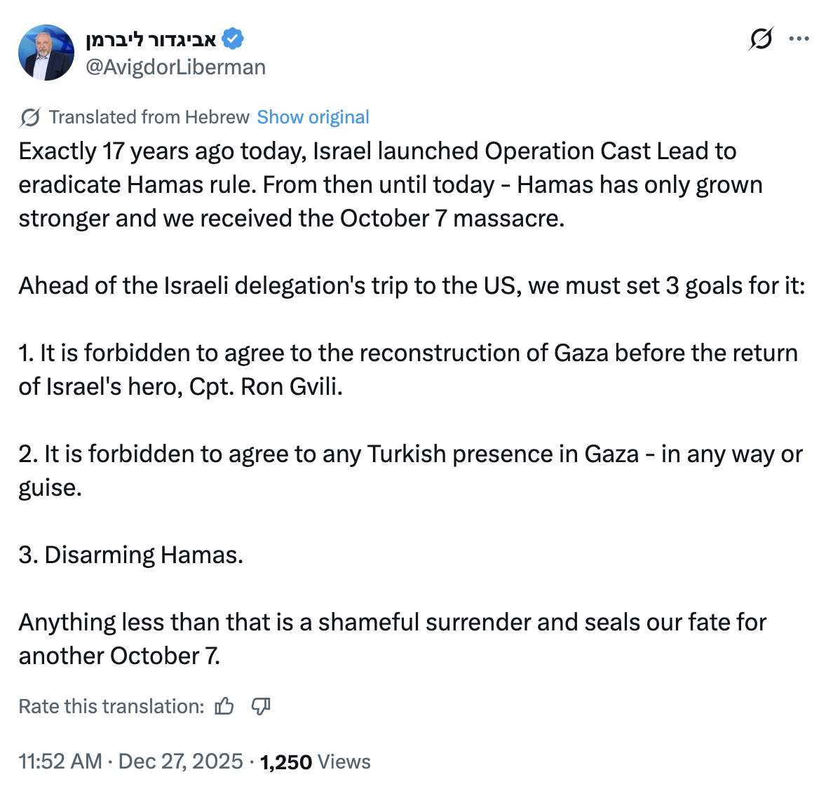 If Hamas does not accept the Trump plan, at that moment we will close all crossings into Gaza. No humanitarian aid, no electricity, water, or fuel will be allowed.